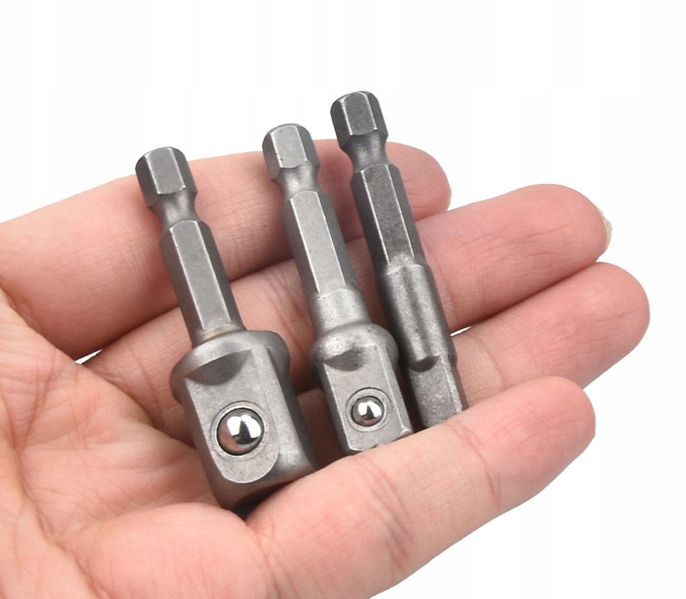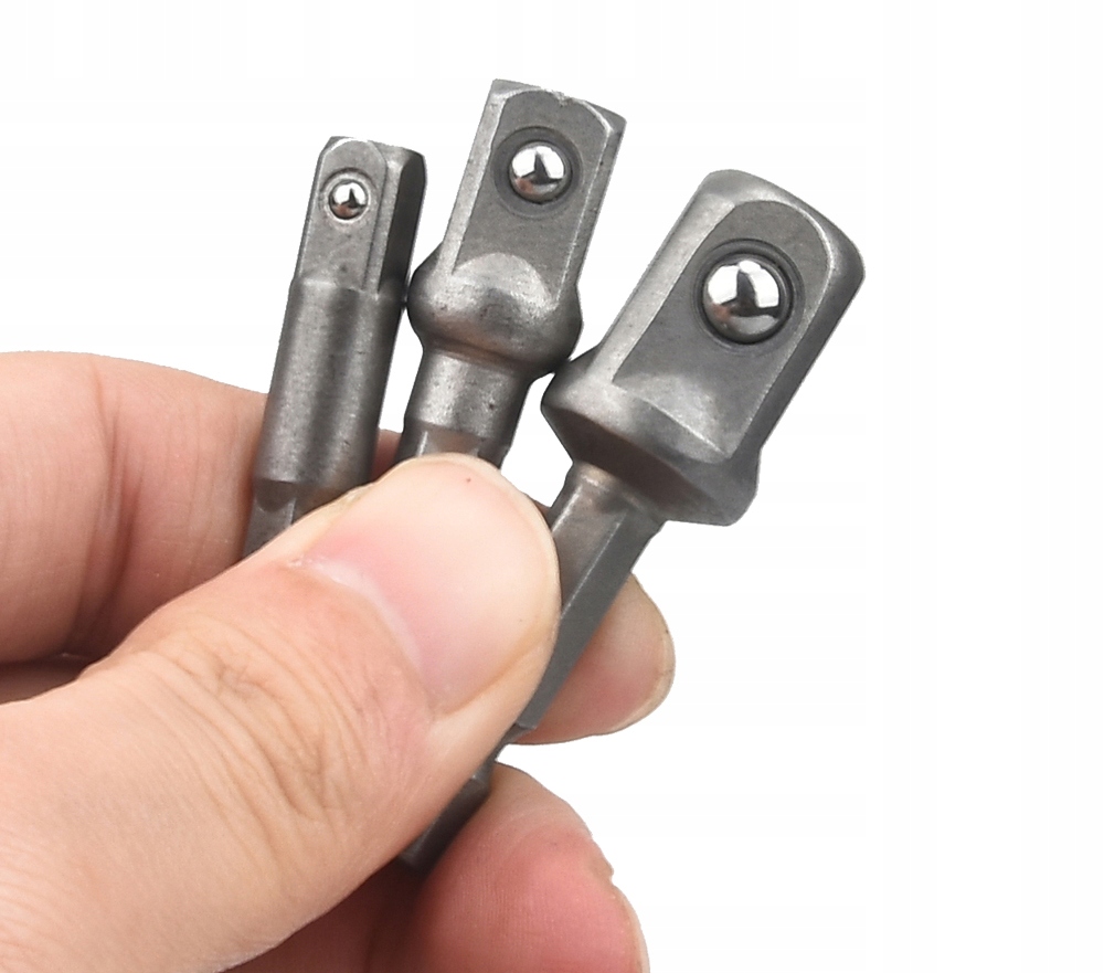 Zestaw 3 adapterów hex do nasadek, wykonane z trwałej stali, czernione.