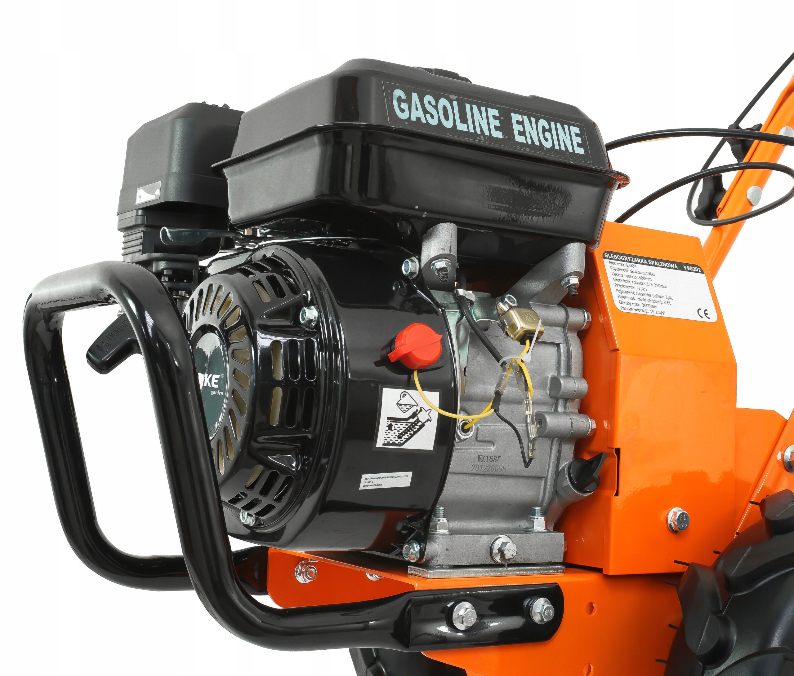 - Silnik spalinowy o mocy 6,5 KM – niezawodny, 4-suwowy silnik o dużej mocy zapewnia efektywną pracę nawet w ciężkich warunkach glebowych.