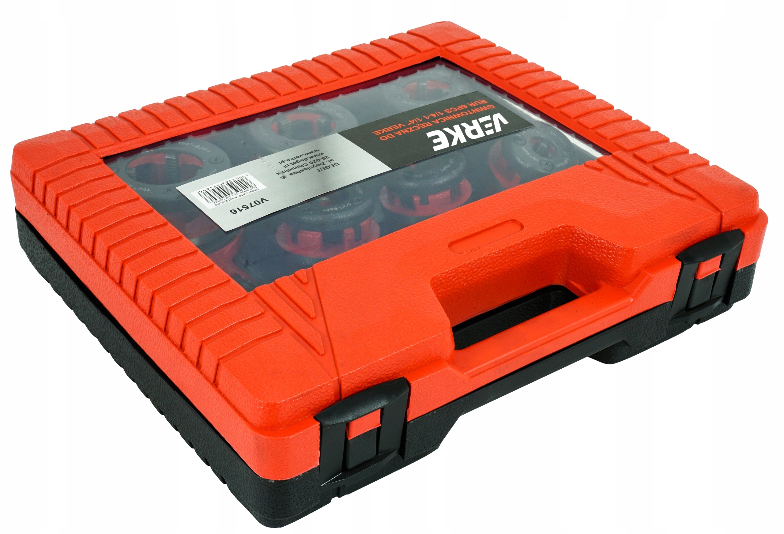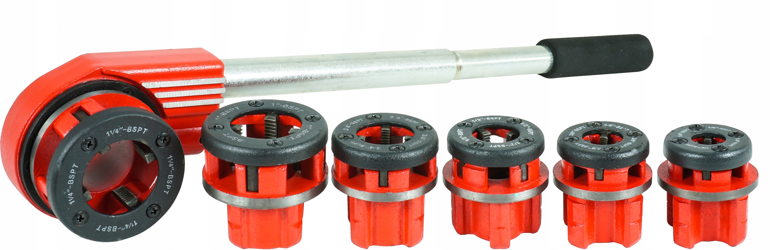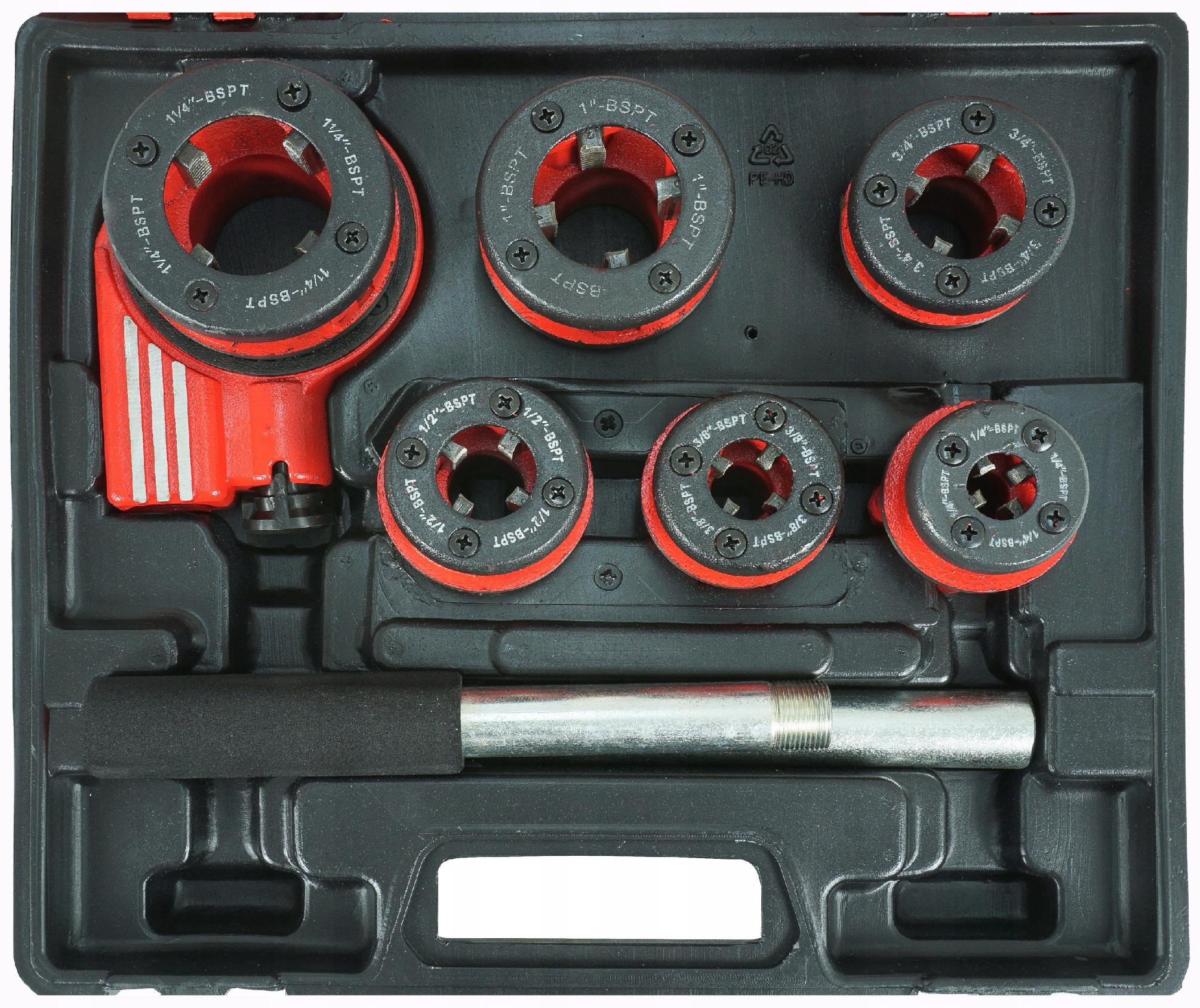 Wysokiej jakości zestaw do gwintowania rur. W skład zestawu wchodzi gwintownica ręczna z systemem grzechotkowym znacznie ułatwiającym pracę oraz przełącznik kierunku pracy. W skład zestawu wchodzi 6 głowic wymiennych w rożnych rozmiarach. Głowice wykonane są z bardzo trwałego i mocnego materiału. Zestaw zapakowany jest w plastikową walizkę wygodną w przenoszeniu oraz przechowywaniu wszystkich elementów.