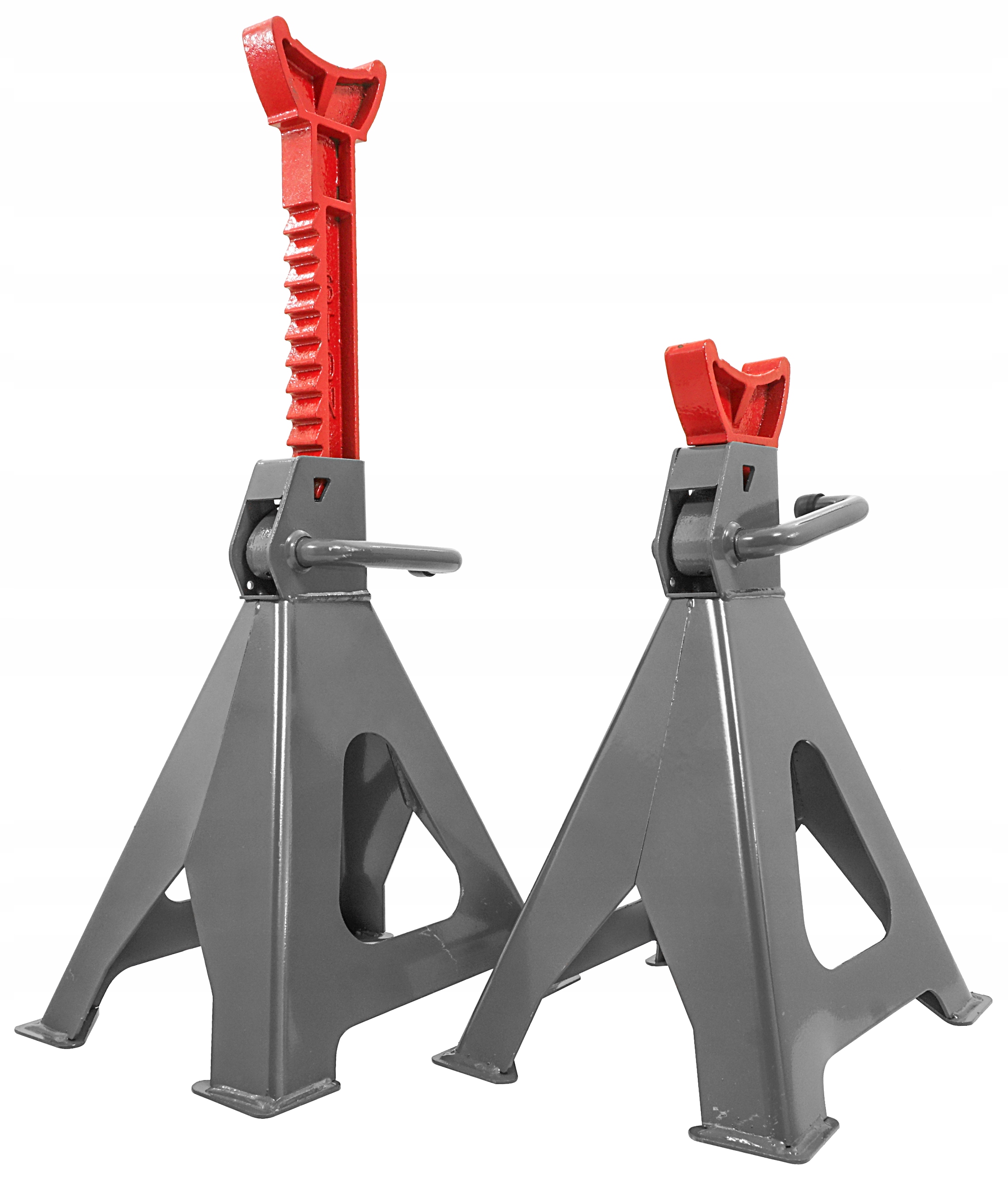 Profesjonalne podstawki samochodowe 6T. Podstawki wykonane z grubych stalowych profili, posiadają wygodną w obsłudze zapadkową blokadę wysokości. Dodatkowym atutem tych podstawek jest nóżka zakończona szeroką stopą, dzięki której podstawki nie wbijają się w podłoże pod naciskiem podpartego przedmiotu. Chroni to podłożę przed zniszczeniem oraz zwiększa stabilność podpór. Ich solida i mocna konstrukcja zapewnia sprawne i długotrwałe użytkowanie. Szczególnie dedykowane profesjonalnym warsztatom samochodowym ale znajdzie również zastosowanie w przydomowych garażach. Idealne narzędzia dla mechaników jak i wszystkich zmotoryzowanych.