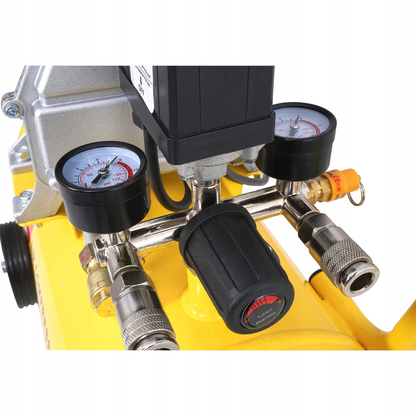 Drugi manometr pracuje z ciśnieniem, które znajduje się w butli kompresora.