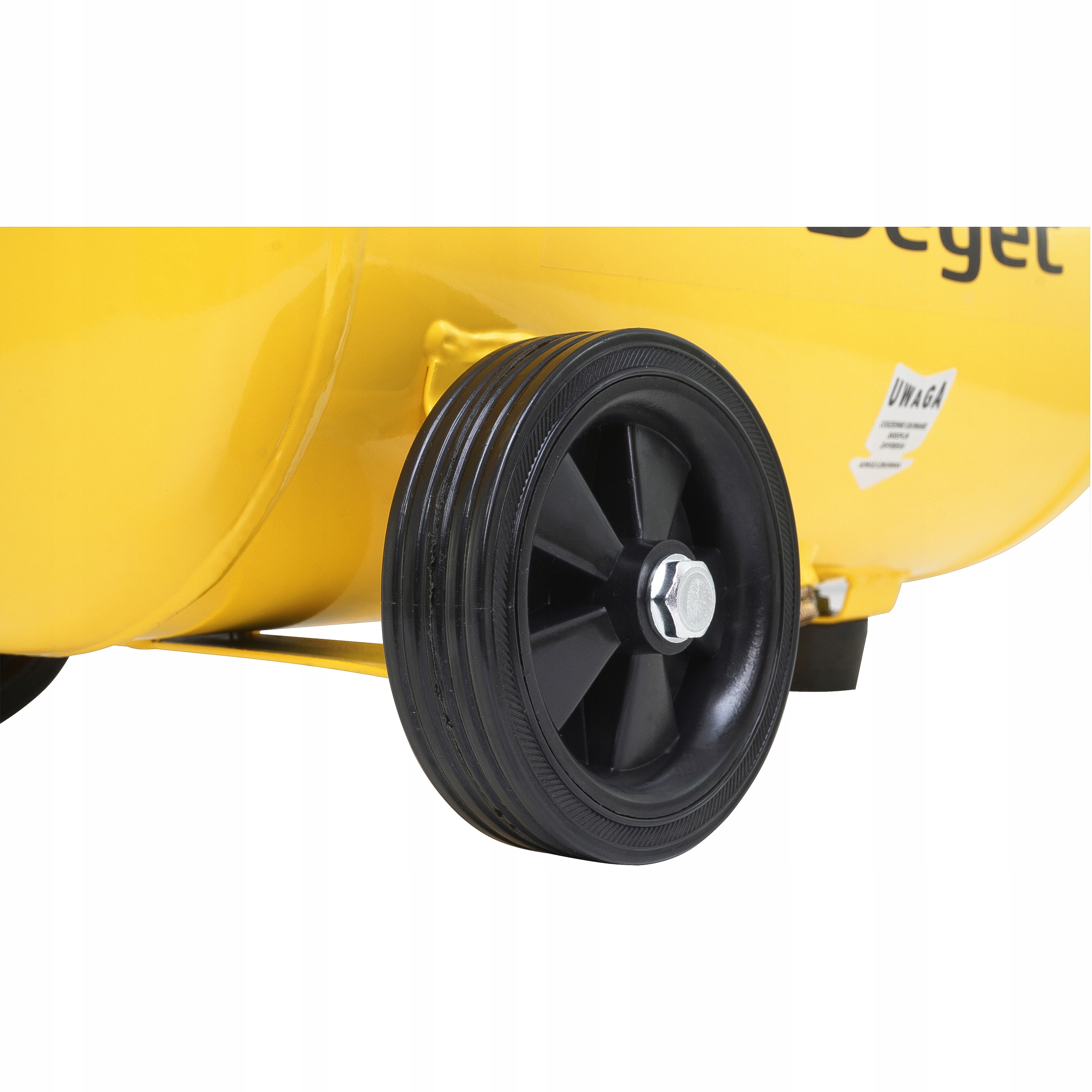 Mobilność kompresora w pracy zapewniają solidne gumowane koła i uchwyt do transportowania kompresora.Dzięki dużym, solidnym kółkom można go łatwo przetransportować w odpowiednie miejsce.