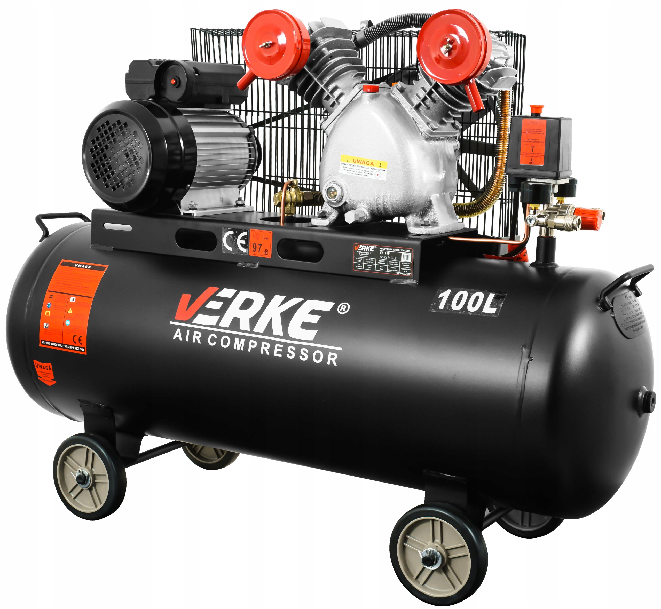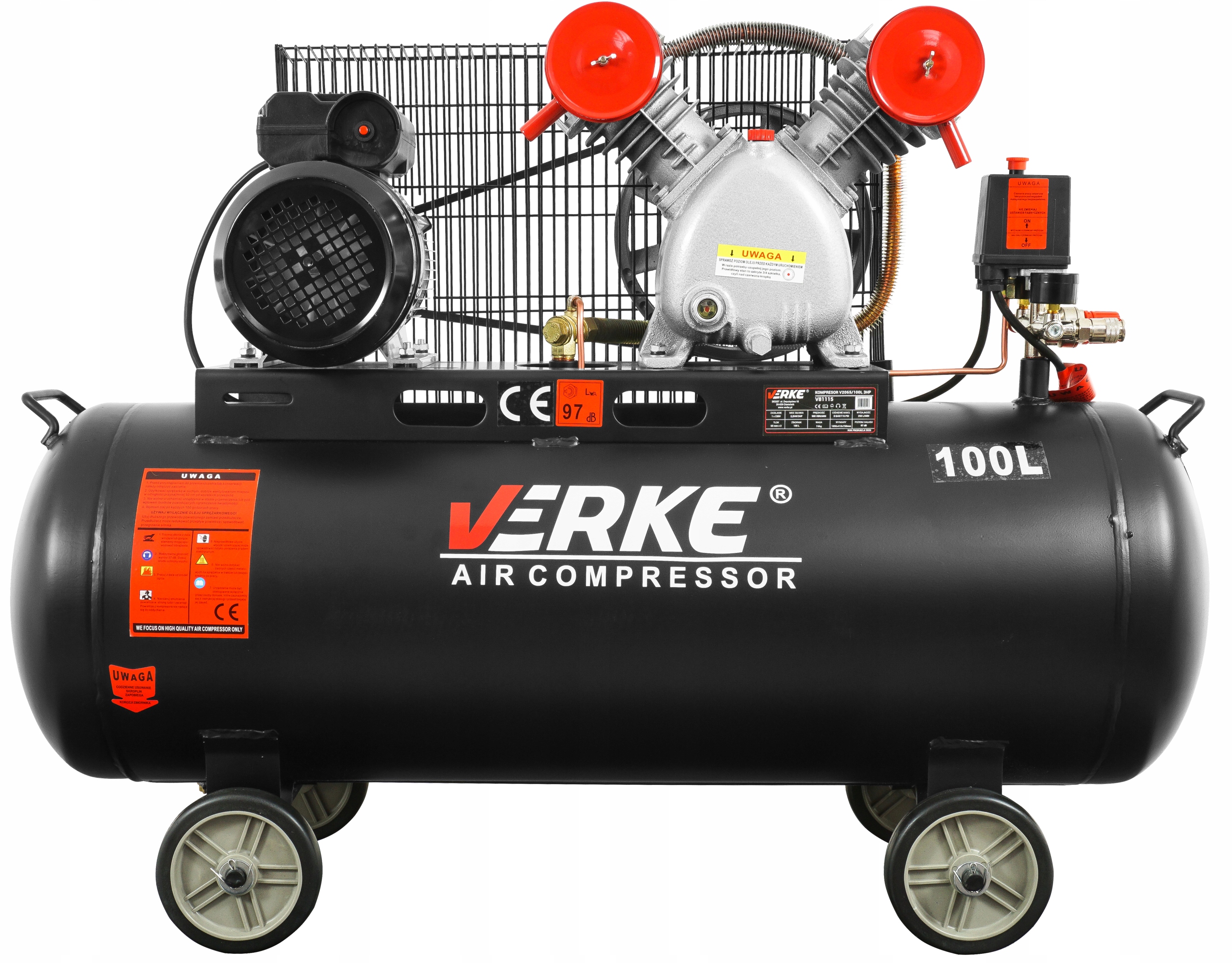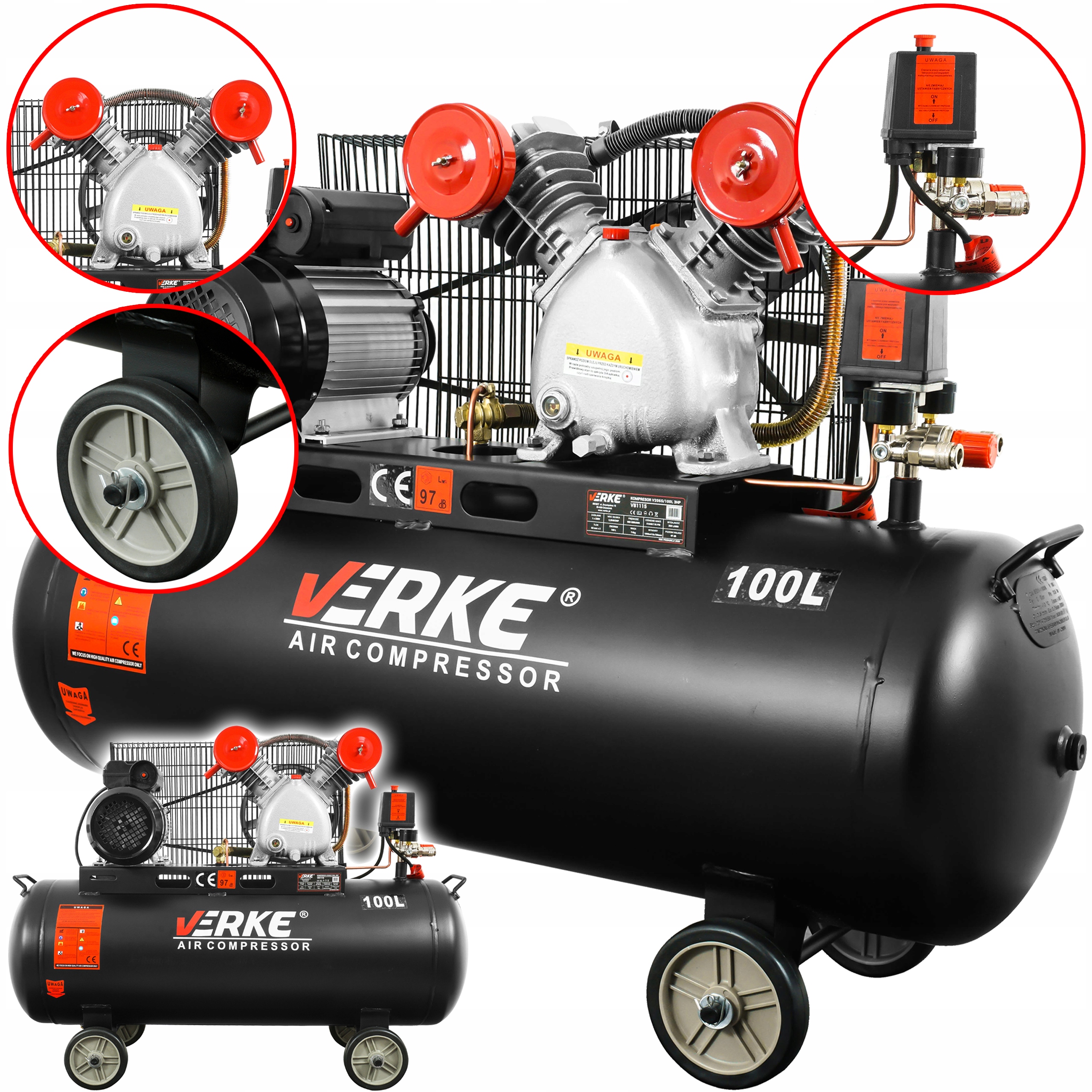 KOMPRESOR SPRĘŻARKA 100L 8 BAR 3HP 250 l/min 2 TŁOKI VERKE