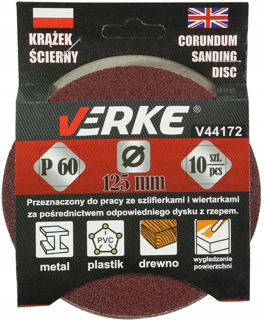 KRĄŻEK PAPIER ŚCIERNY P 60 125 MM 10 SZTUK VERKE