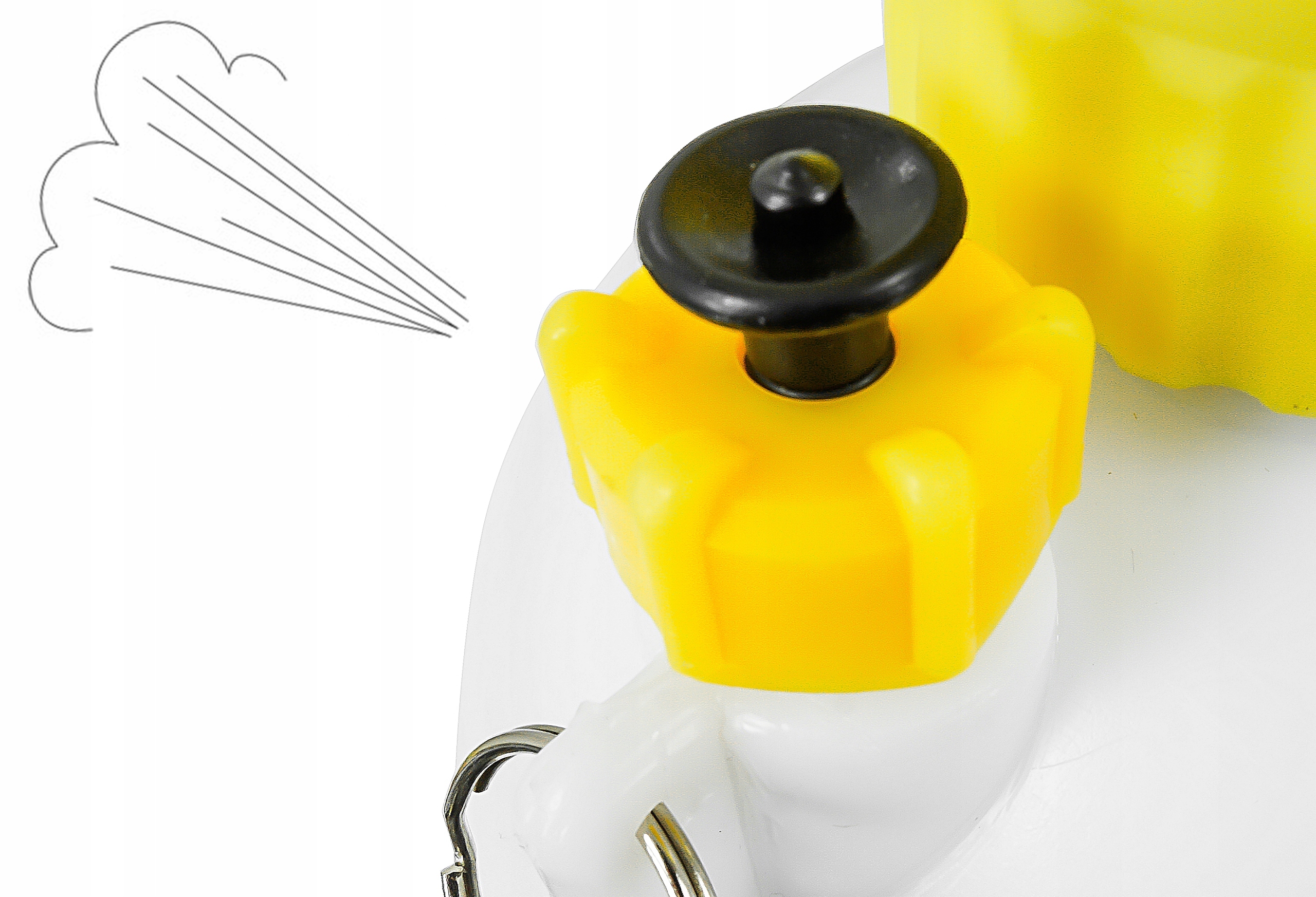 Zawór ten jest też dobrą metodą na spuszczenie ciśnienia z opryskiwacza. W momencie w którym zakończyli Państwo opryski, a w opryskiwaczy jest wysokie ciśnienie, nie muszą Państwo martwić się jego zmniejszeniem lub wypryskiwaniem reszty płynu. Wystarczy pociągnąć do góry czerwony zaworek i ciśnienie w opryskiwaczu spadnie do poziomu trochę większego od ciśnienia otoczenia.