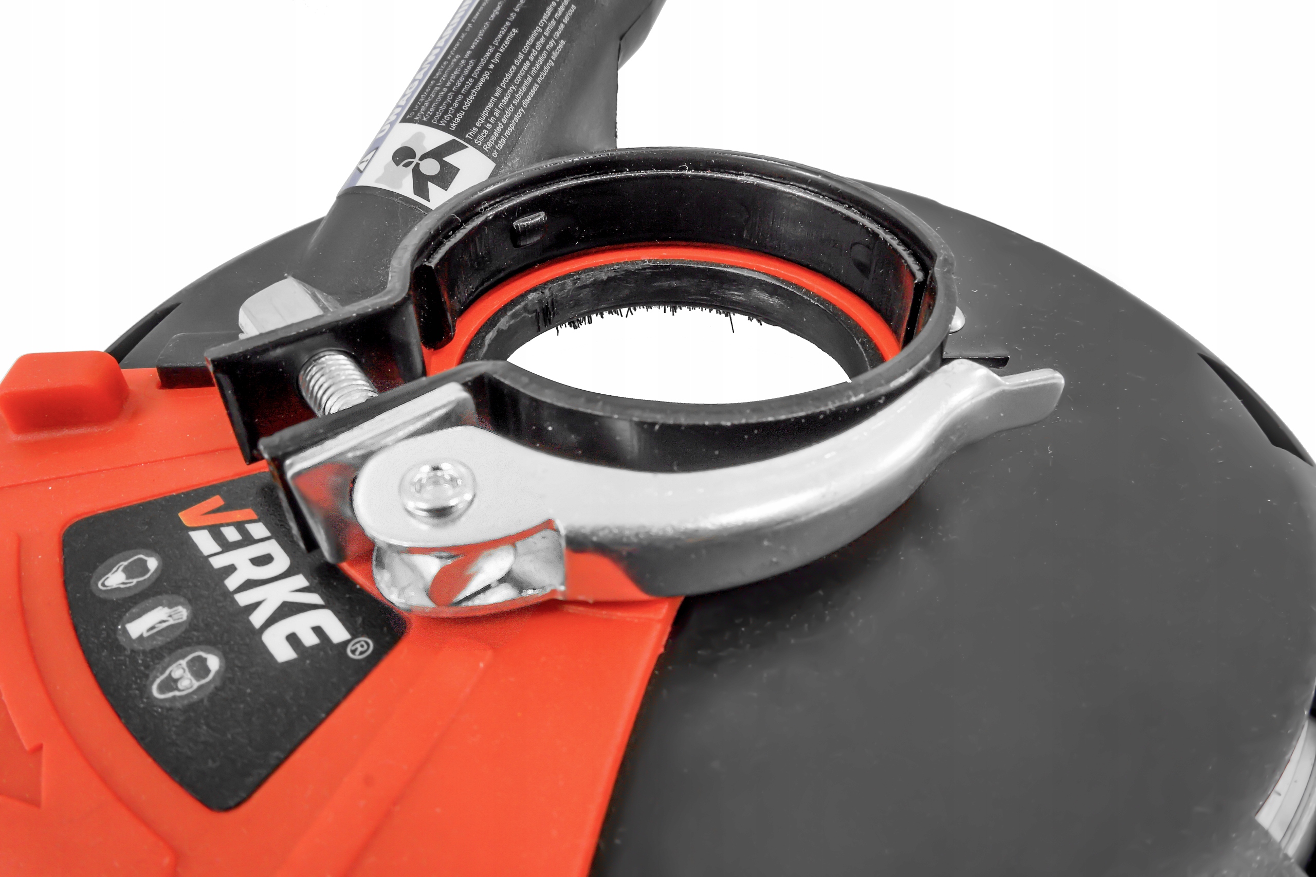 System odsysania w osłonie VERKE został zaprojektowany tak, aby w maksymalnym stopniu ograniczyć unoszenie się pyłu w trakcie szlifowania. Redukcja do węża odkurzacza zapewnia szczelne połączenie z większością popularnych modeli odkurzaczy przemysłowych. Dzięki temu: