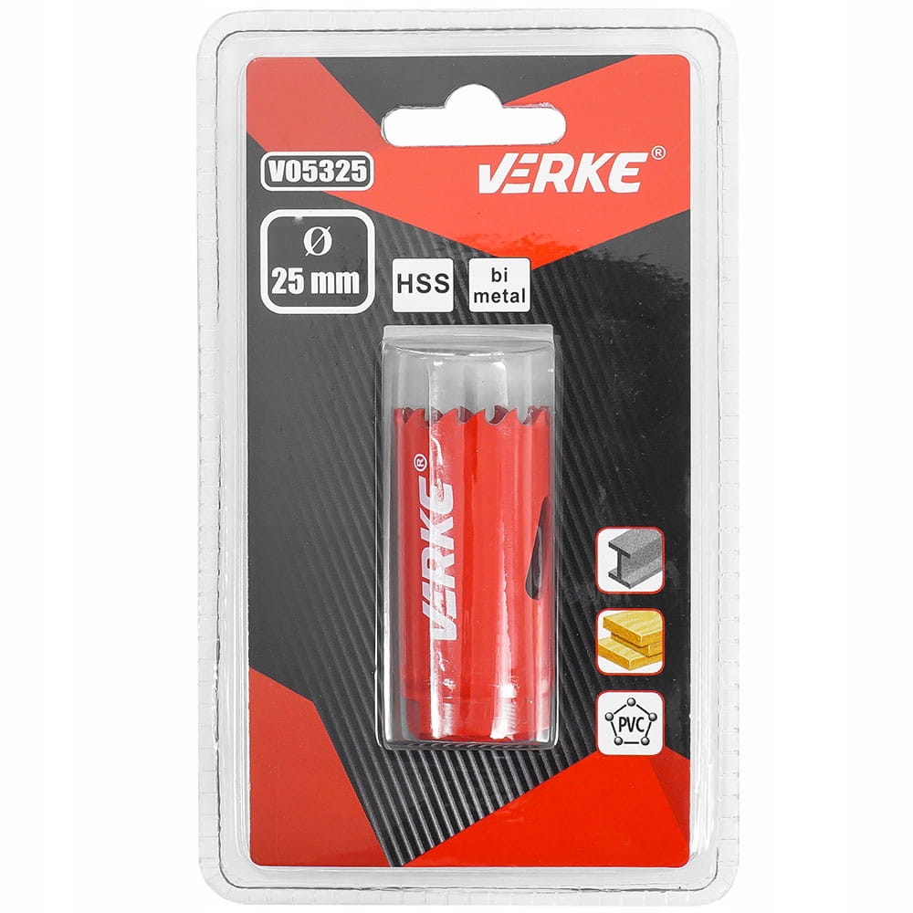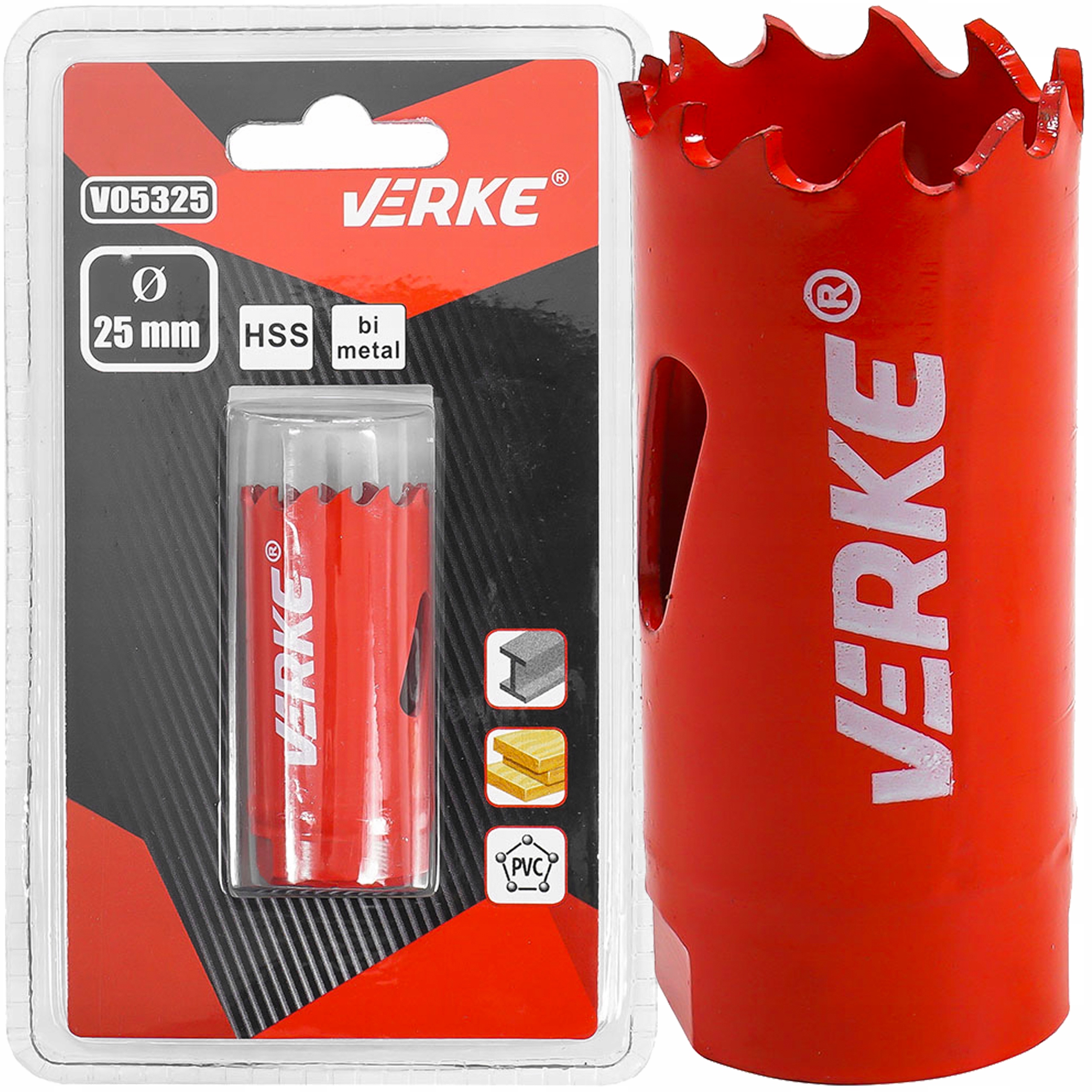 Otwornica bimetalowa VERKE doskonała do wiercenia w metalach, blachach, kształtownikach, tworzywach sztucznych, płytach meblowych, płytach kartonowo-gipsowych, wiórowych itp. Dzięki progresywnemu uzębieniu i wykonanemu ze stali szybkotnącej HSS, pozwala na wydajne wiercenie precyzyjnych otworów. Polecany do użytku zawodowego w przemyśle, serwisach oraz warsztatach, jak i w gospodarstwie domowym.