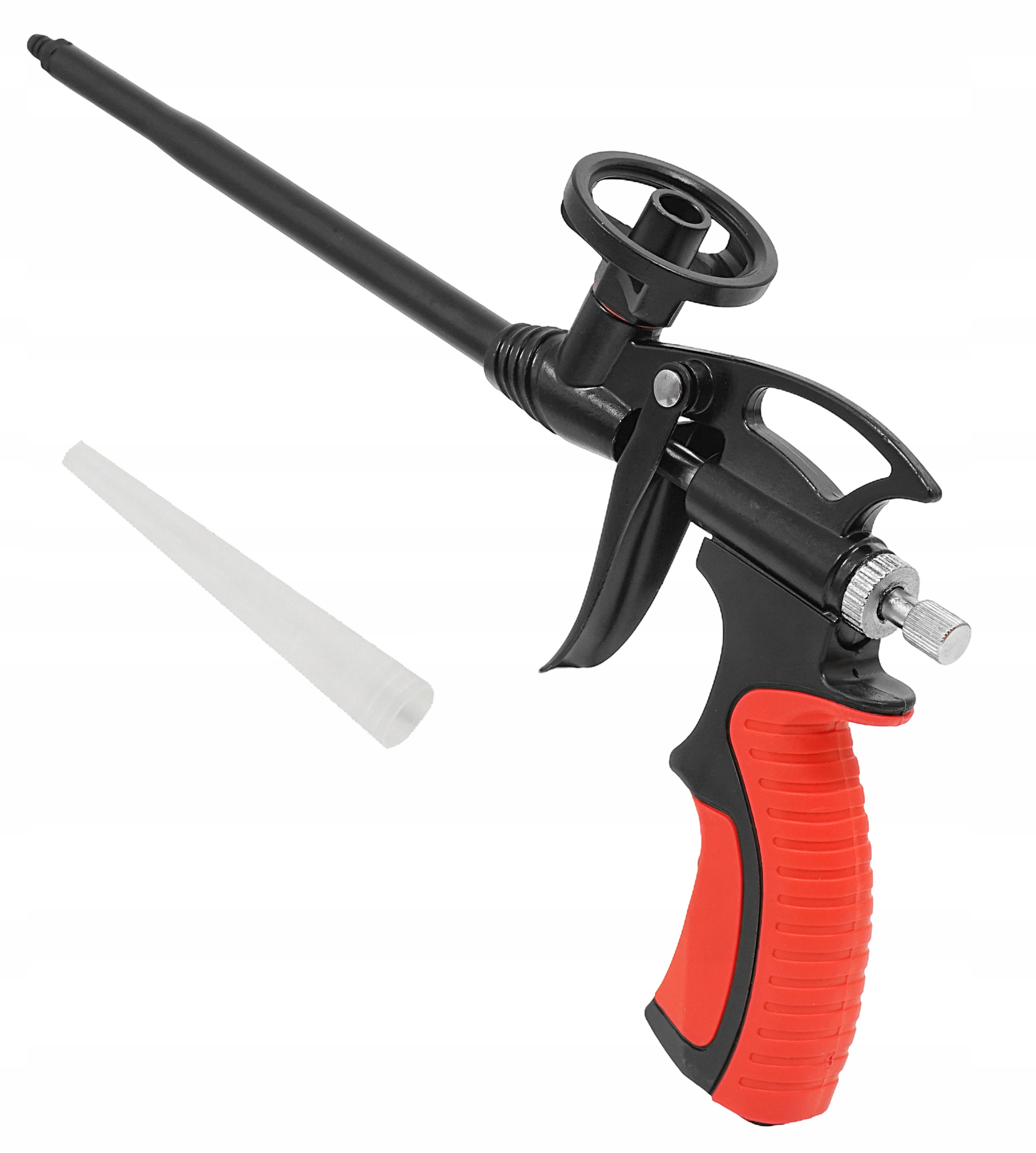 Pistolet do pianki montażowej przeznaczony do precyzyjnego dozowania piany PU z typowych dostępnych na rynku butli. Pozwala na wielokrotne użycie, ułatwia wykonanie takich prac jak: uszczelnianie, montaż okien i drzwi, wypełnienie szczelin w izolacji, uszczelnianie i izolacja ścianek działowych oraz ocieplanie ścian i dachów.