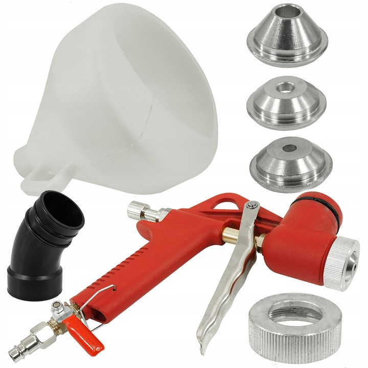 ► Dzięki wymiennym dyszom (4, 6, 8 mm) użytkownik może dopasować rozmiar strumienia do rodzaju materiału, uzyskując idealne pokrycie powierzchni.