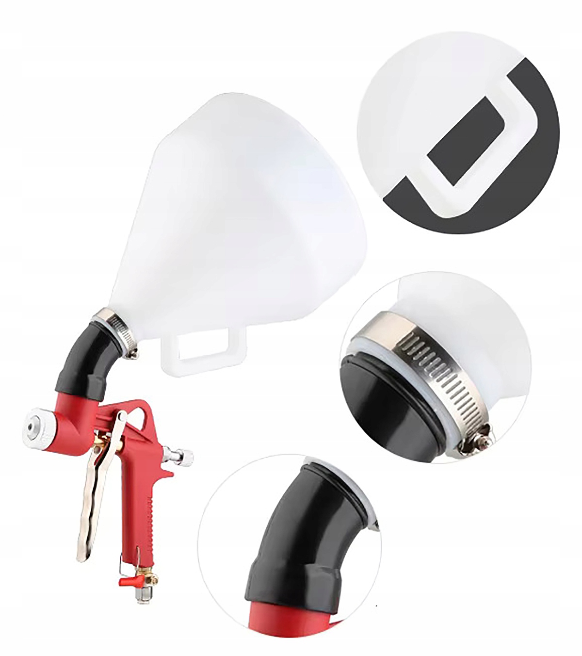 Dzięki dużemu zbiornikowi o pojemności 5 litrów i grawitacyjnemu systemowi podawania, urządzenie idealnie sprawdza się przy nanoszeniu tynków akrylowych, gładzi gipsowych, farb emulsyjnych i klejowych, a także przy bieleniu wapnem.