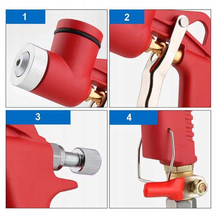 ► Dysze wykonane ze stali nierdzewnej są odporne na ścieranie, korozję i zapewniają długą żywotność pistoletu.