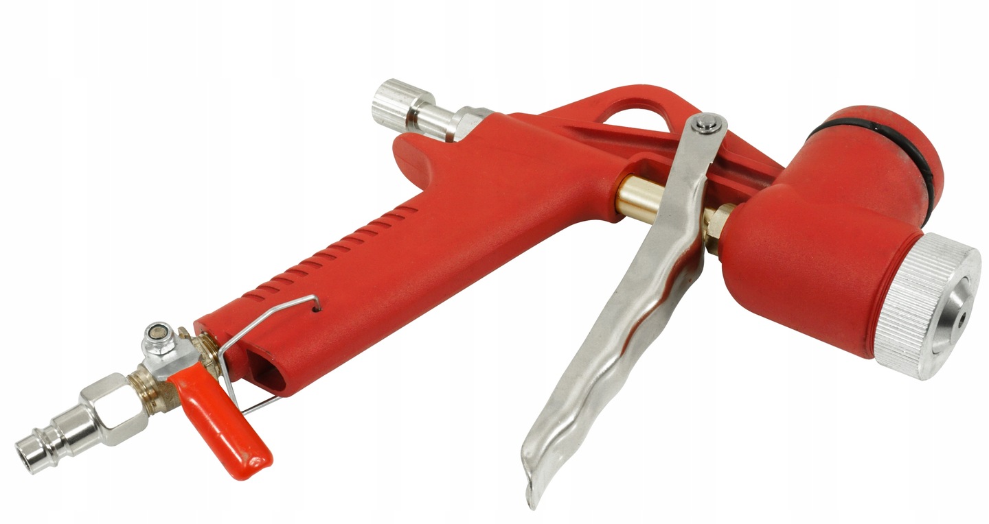 Wyposażony w zawór kulkowy, umożliwiający pełne odcięcie dopływu powietrza, pistolet zapewnia pełną kontrolę nad natryskiem i pozwala współpracować nawet z małymi kompresorami.