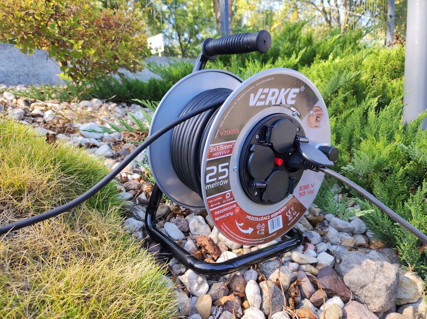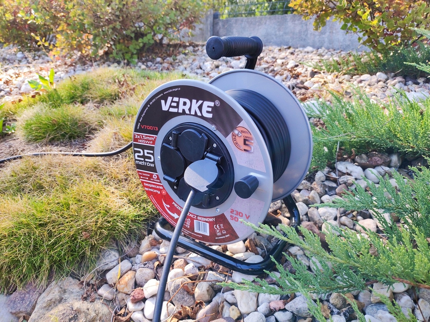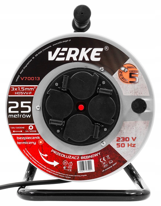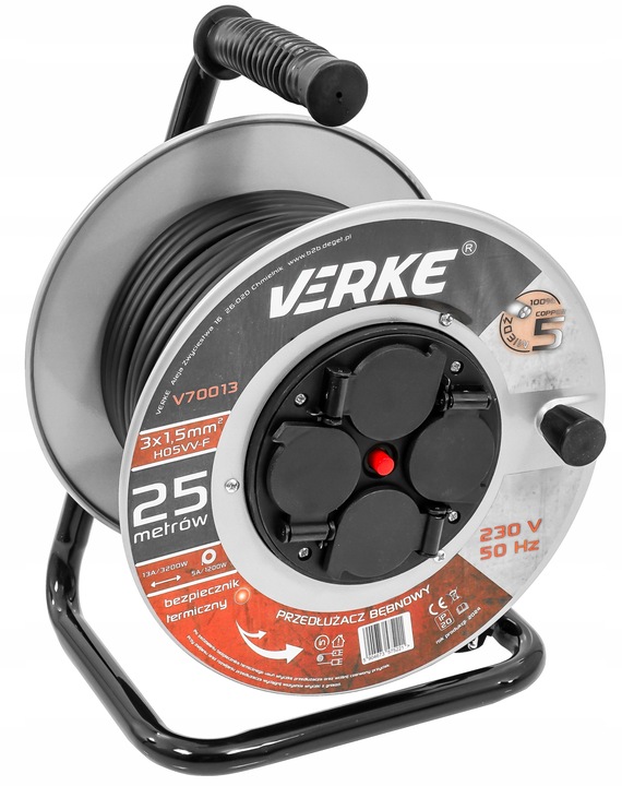 ✅ 25 metrów – przedłużacz ma aż 25m, dzięki czemu świetnie sprawdzi się zarówno w domu, w magazynie czy ogrodzie