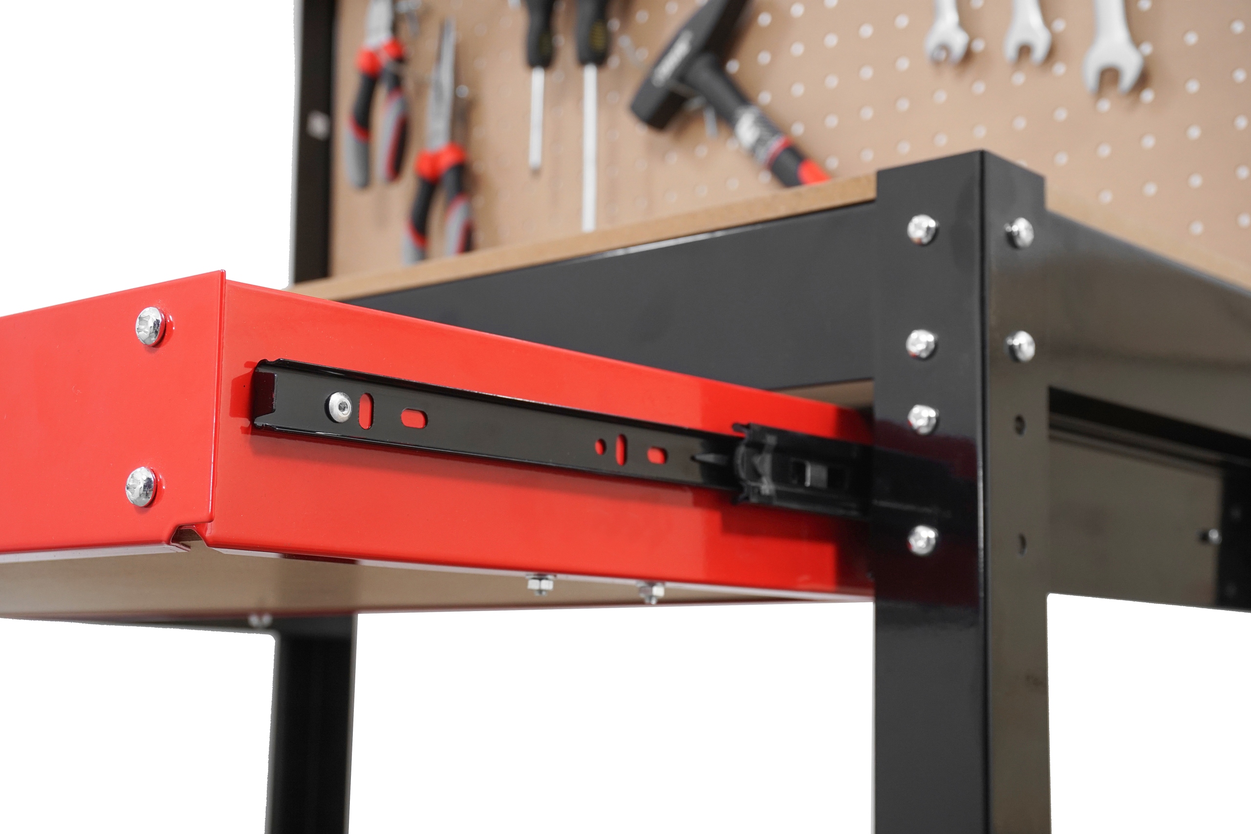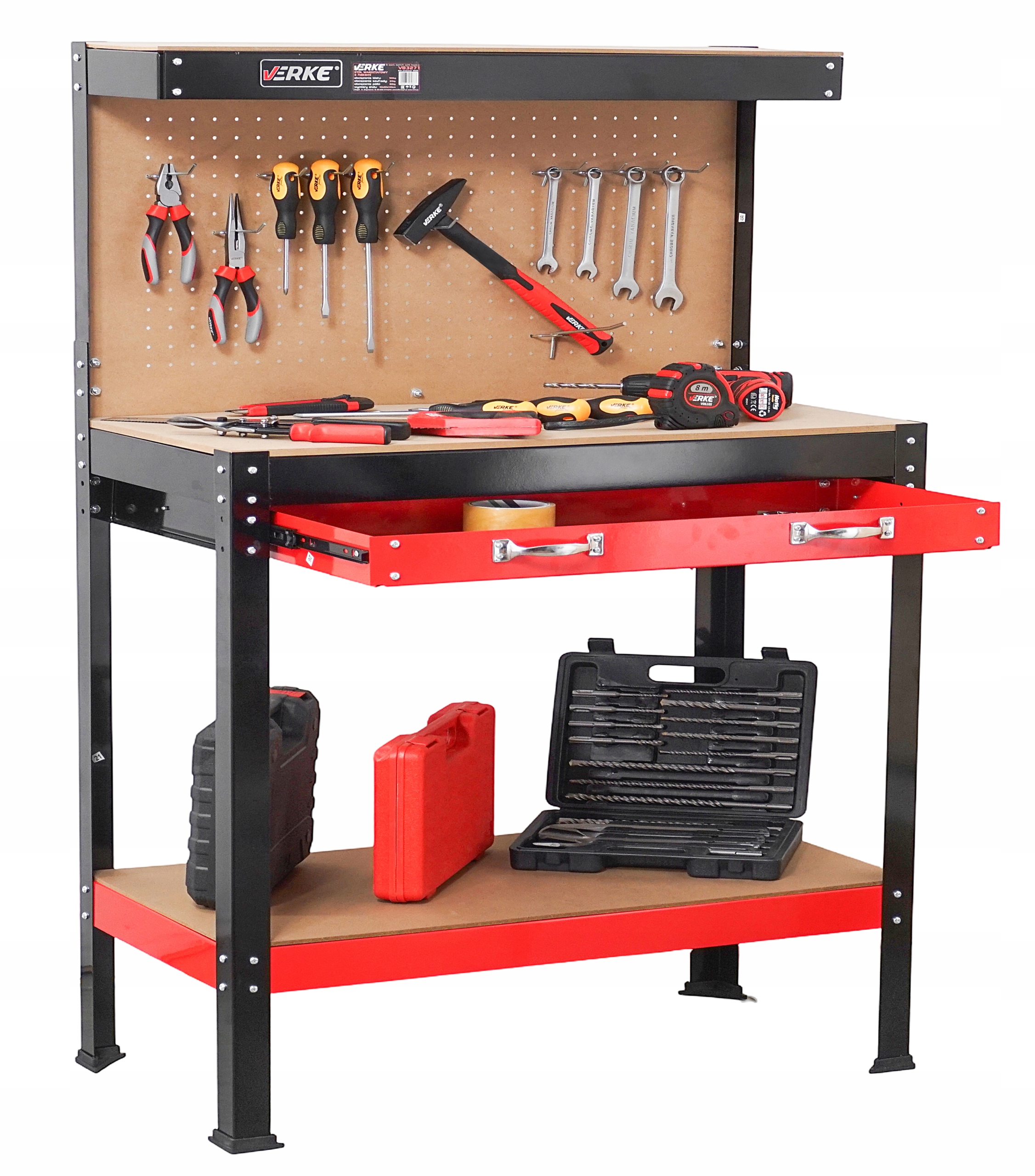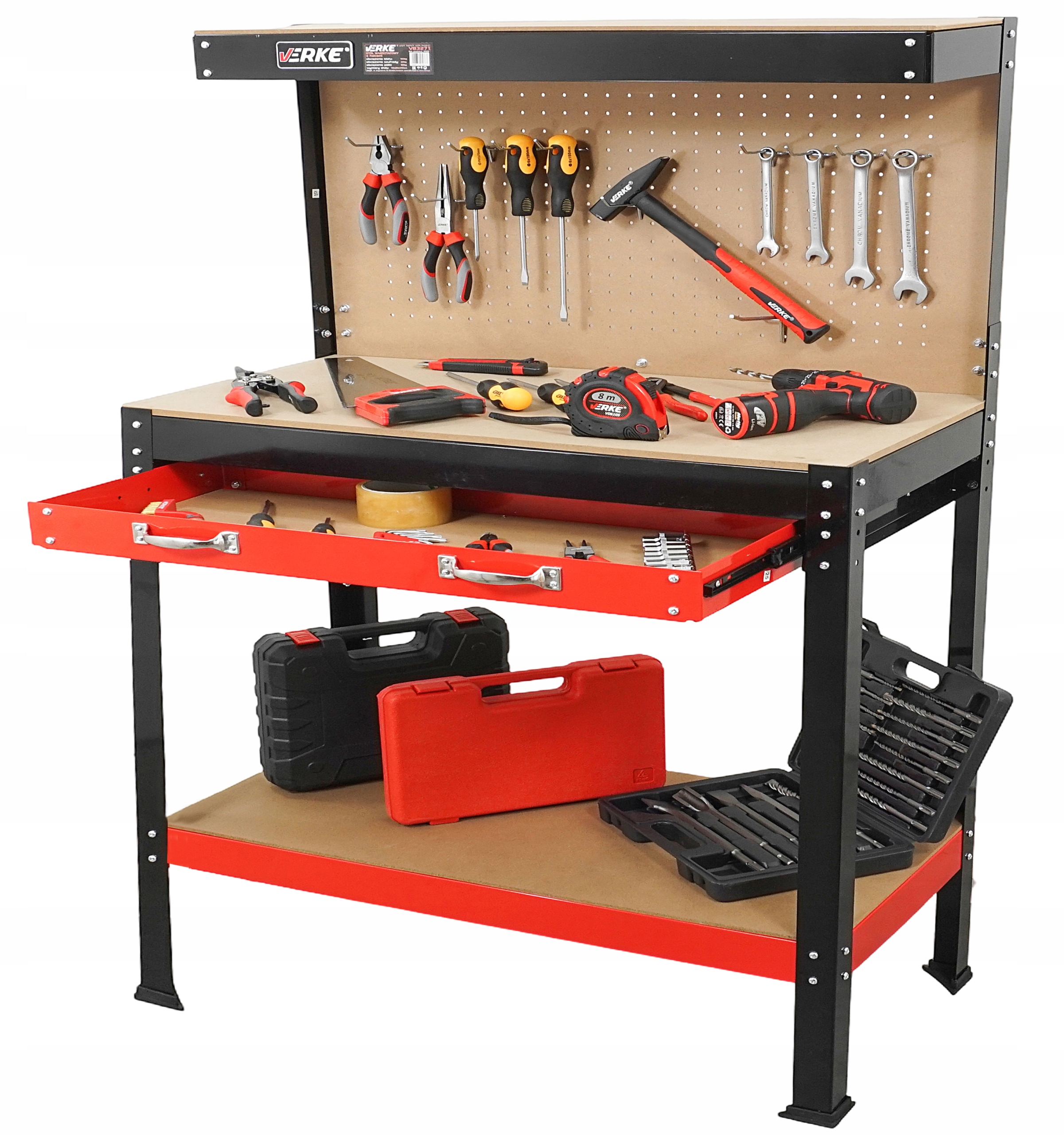 Dzięki przemyślanej konstrukcji i dodatkom, takim jak perforowana tablica, wszystkie narzędzia są zawsze na swoim miejscu, co ułatwia pracę i poprawia efektywność.