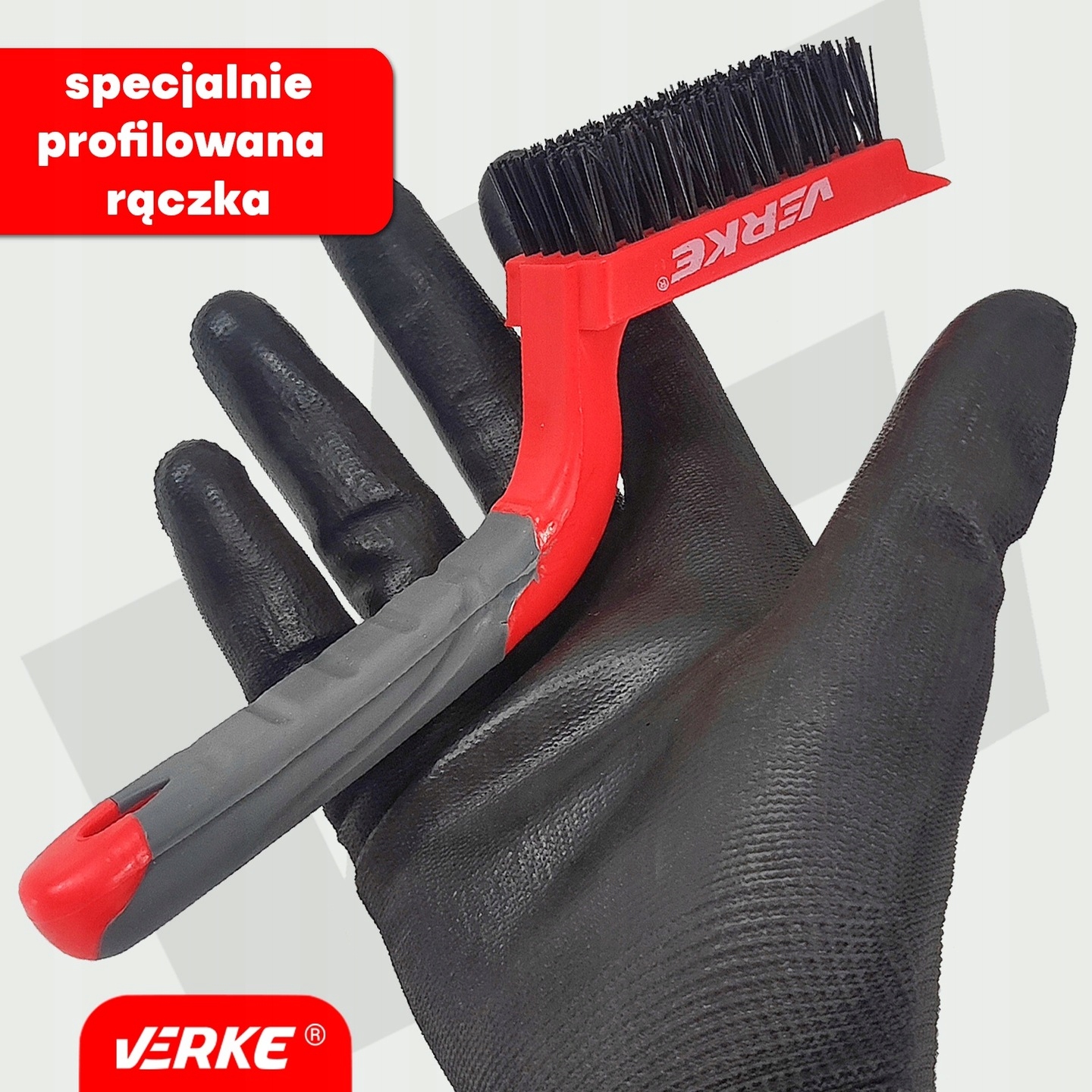 Została wkonana z włókna nylonowego i osadzonego trwale w korpusie z tworzywa sztucznego. Specjalnie profilowana rączka zwiększa efektywność i wygodę pracy.