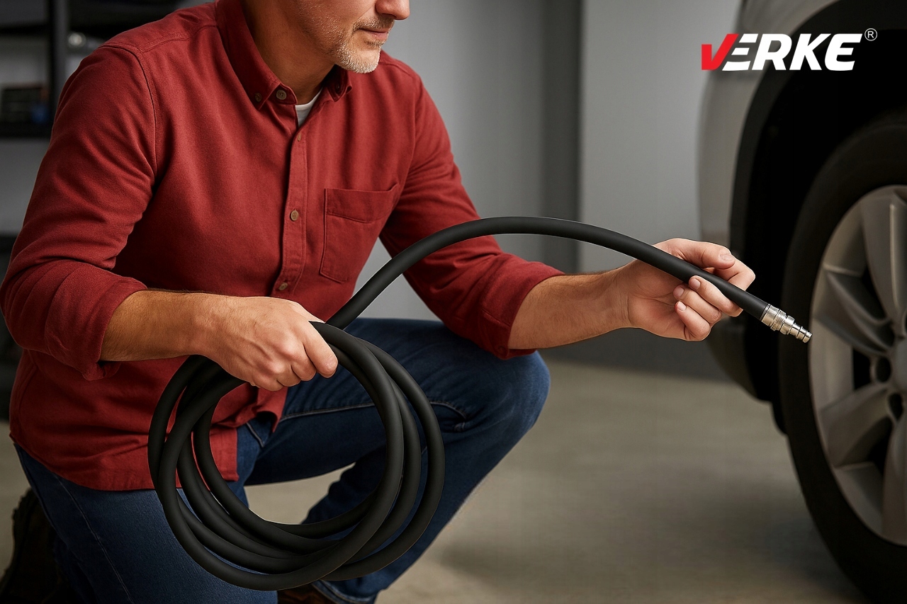 SOLIDNEJ JAKOŚCI WĄŻ VERKE DOSKONALE WSPÓŁPRACUJE Z NARZĘDZIAMI PNEUMATYCZNYMI