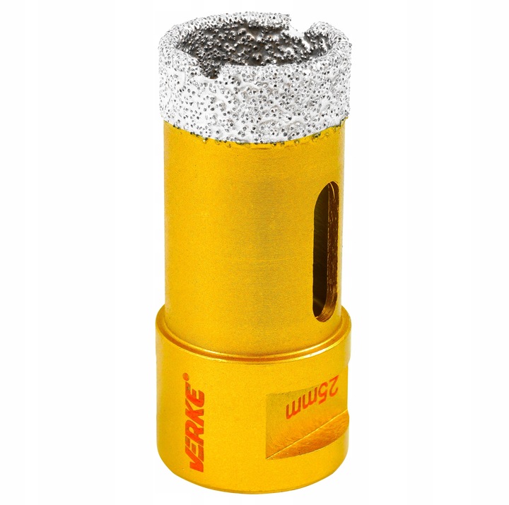 Otwornica diamentowa fi 25 mm, wyposażona w gwint montażowy M14 do mocowania w szlifierkach kątowych. Idealne do wykonywania otworów w materiałach takich jak: gres, płytki ceramiczne, klinkier, glazura oraz kamień naturalny.