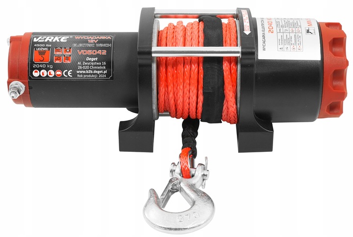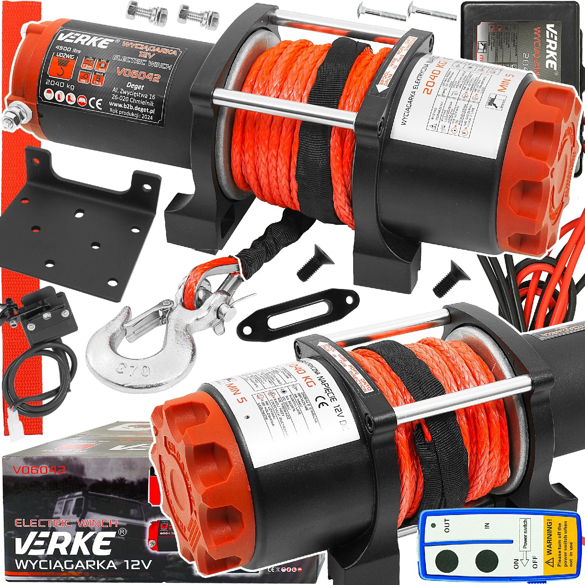 WYCIĄGARKA 12V, 4500 LBS, SYNTETYCZNA LINA VERKE