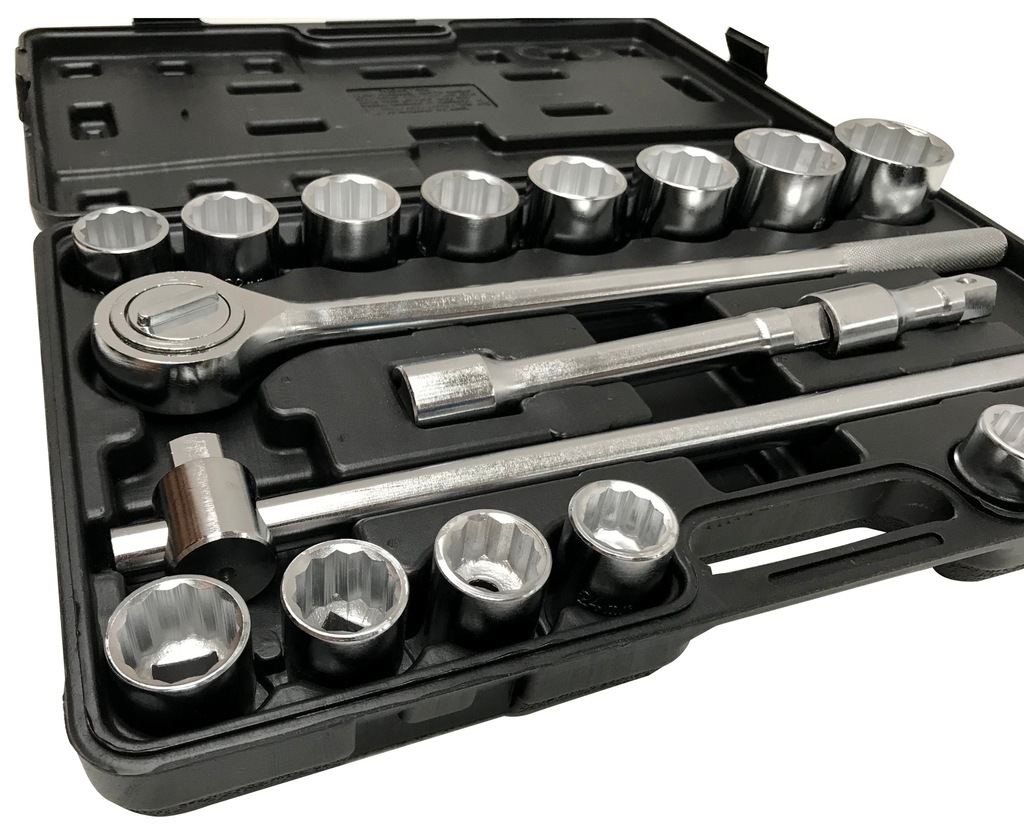 - klucze nasadowe na 3/4″ – od 19 mm do 50 mm -19; 21; 22; 23; 24; 26; 27; 29; 30; 32; 35; 36; 38; 41; 46; 50