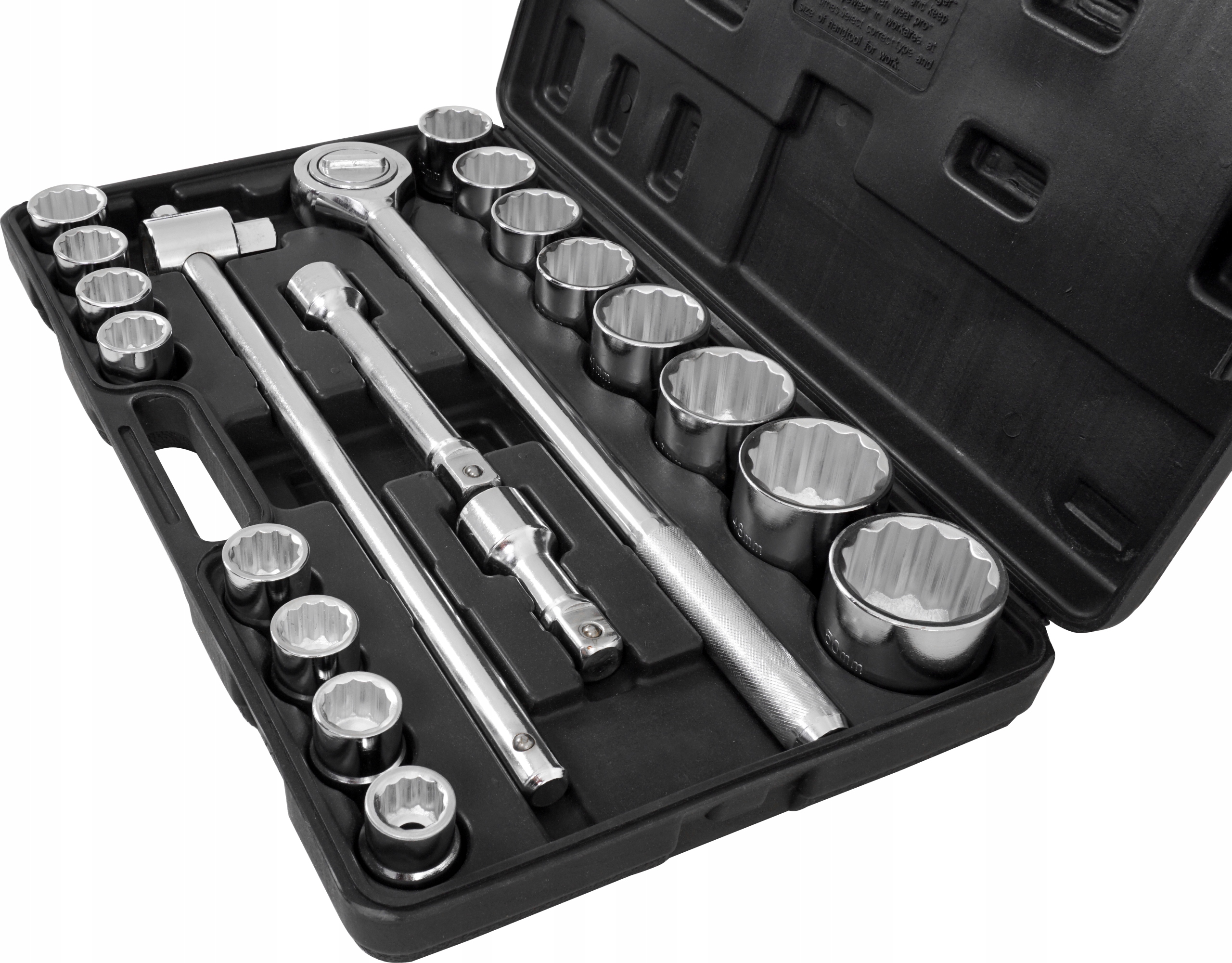 - 21-częściowy zestaw kluczy nasadowych 3/4″