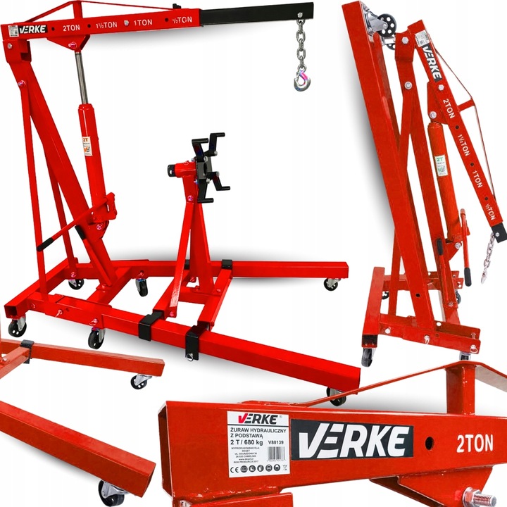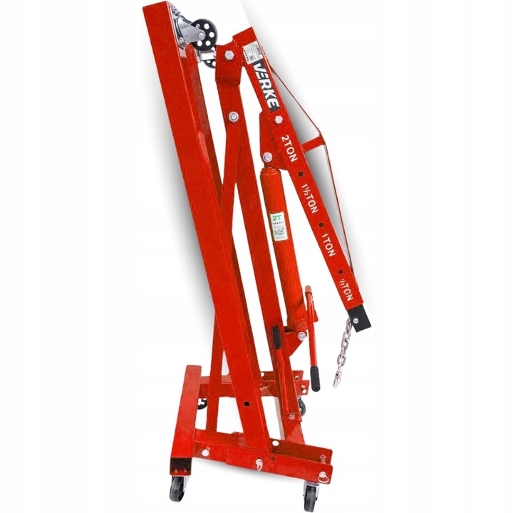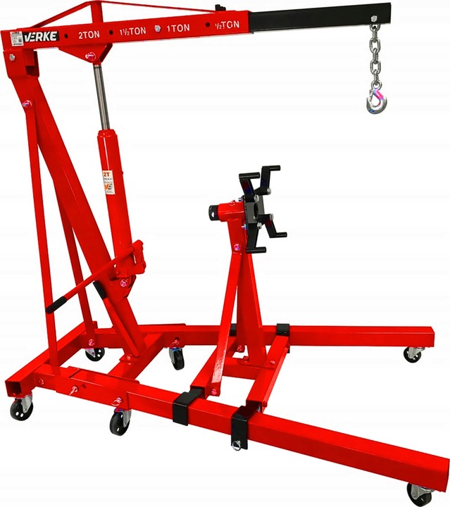 Profesjonalny, praktyczny, mobilny i składany żuraw przydatny w warsztatach, serwisach samochodowych do manipulacji z ciężkim ładunkiem. Solidna stalowa konstrukcja umożliwia podnoszenie elementów o wadze do 2t. Posiada wysuwane ramię nastawiane w 4 pozycjach oraz 6 kół obrotowych które zapewniają łatwe manewrowanie żurawiem. Urządzenie wykonane z bardzo dobrych materiałów co sprawia, że jest to mocna, dokładnie wykonana konstrukcja zapewniająca długotrwałą i bezpieczną prace. Urządzenie można szybko złożyć i przemieścić. Żuraw jest tak skonstruowany, że po złożeniu zajmuje bardzo mało miejsca. Podstawa montowana na ramionach żurawia umożliwia montaż silnika i prace przy nim.